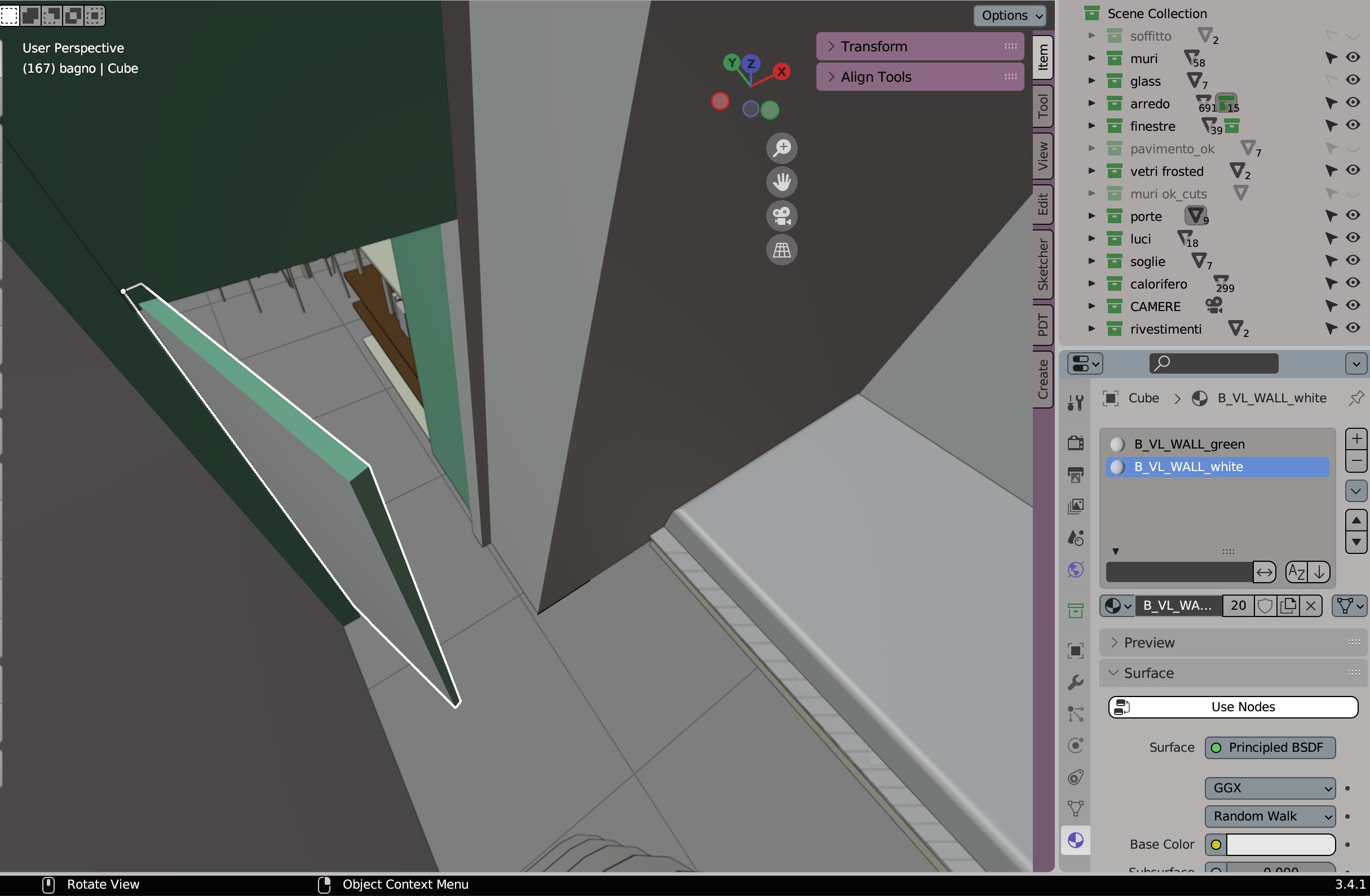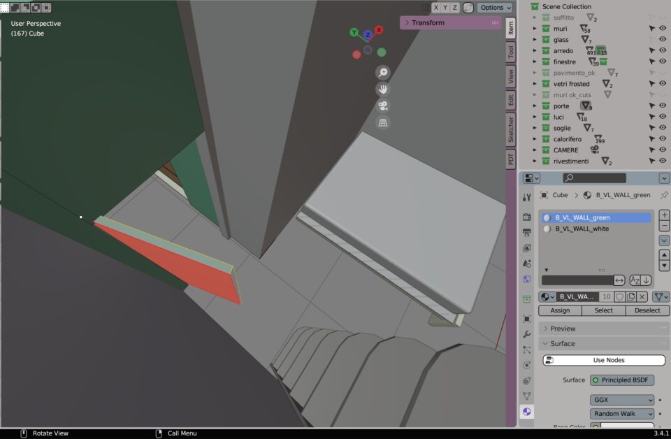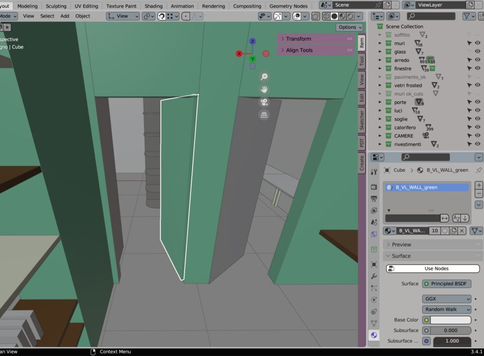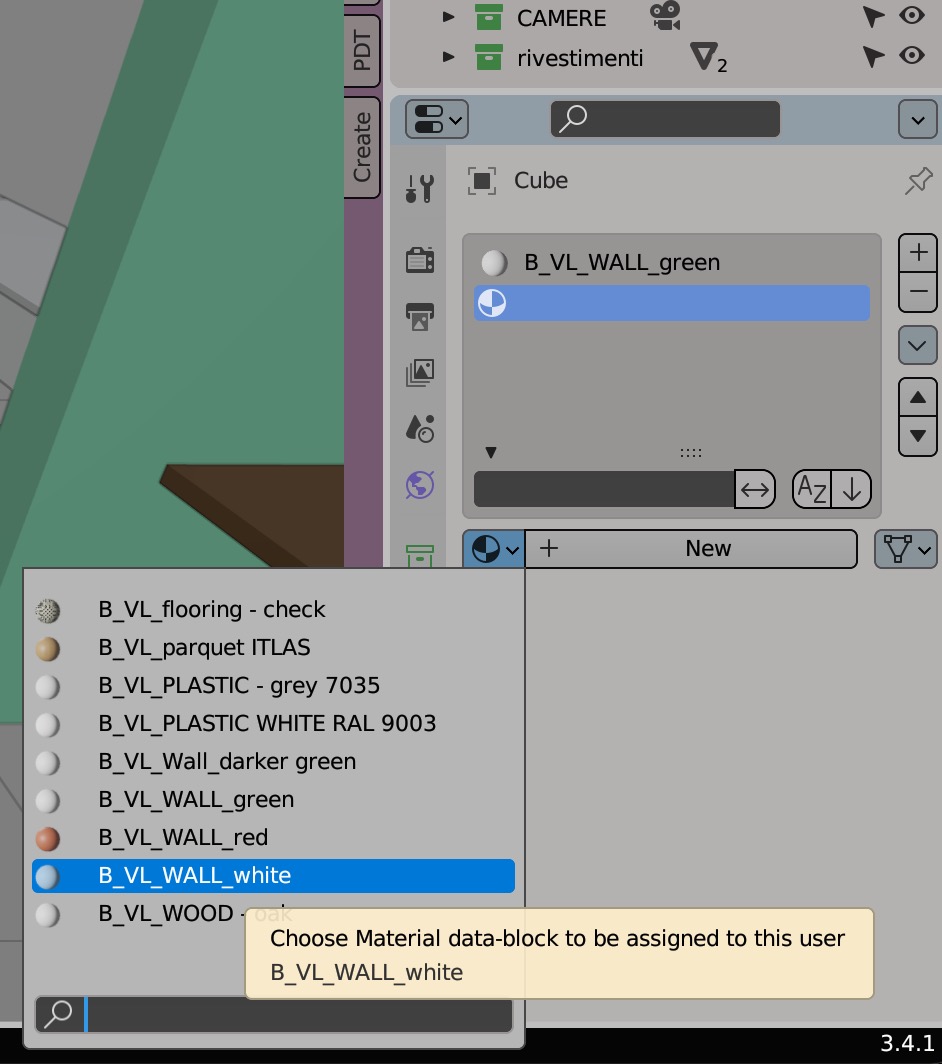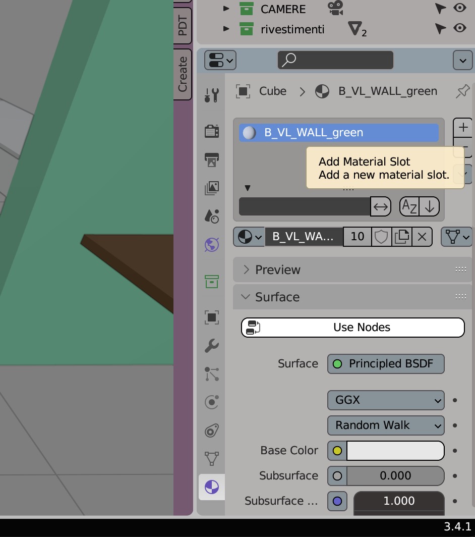 - as made in this guide – create your first material and apply it to an object. Let’s take the example of a wall, painted green on a side, and white on another. Add the white color or material to the object.