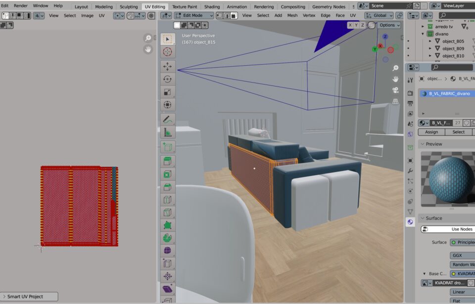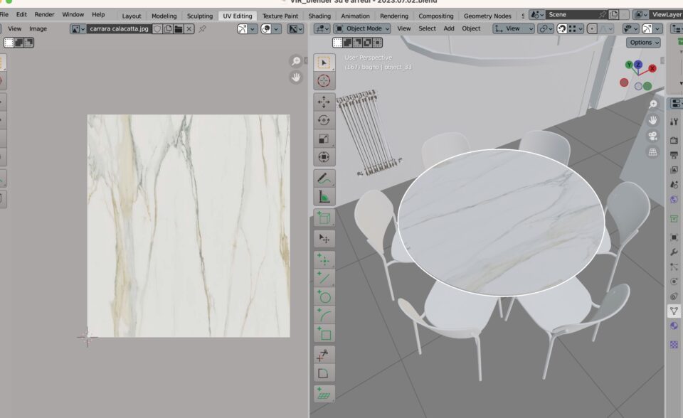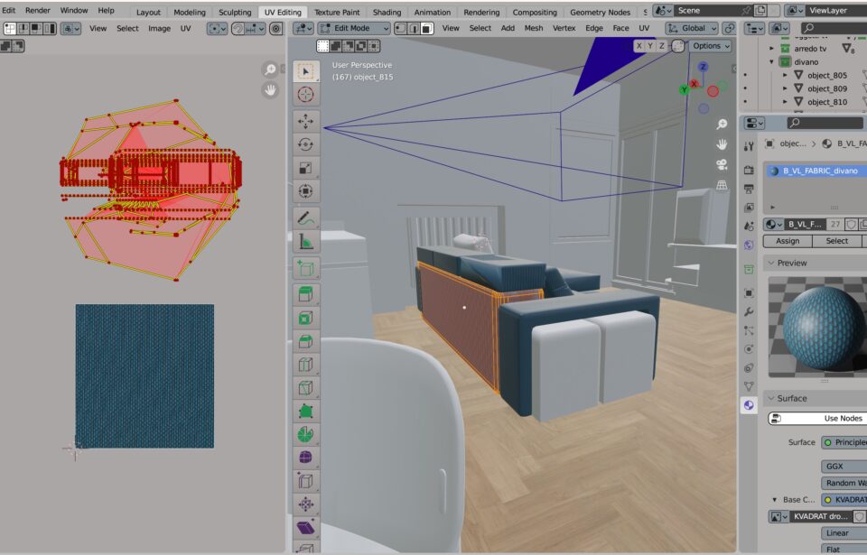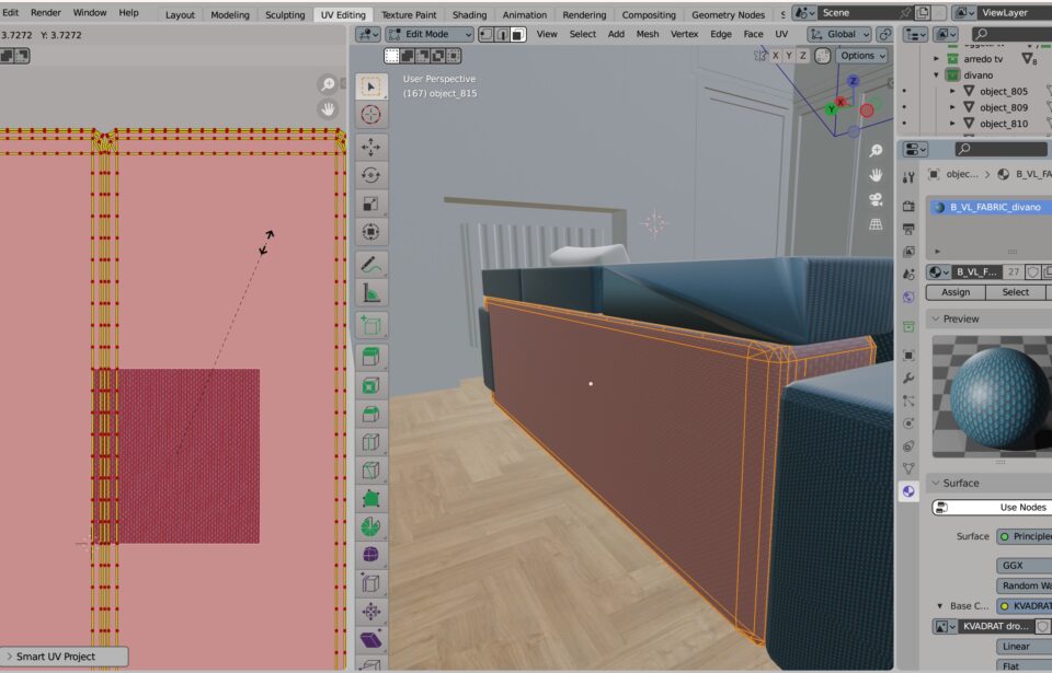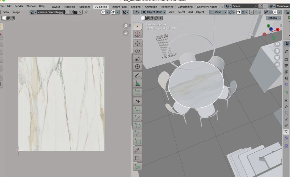In the previous example, we applied a material to a narrow surface, so we didn’t care a lot about how the texture appears to other sides. Differently it is in the case of more big, complex or thick objects; not perfect cubes but volumes with 3 important lenghts. Let’s do another exercise in this sense.