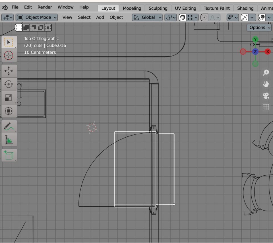 2. Draw a volume of the hole you would like to make. You can draw also something not perfectly rectangular, to match the perfect void you would like to realize (see the plan below).