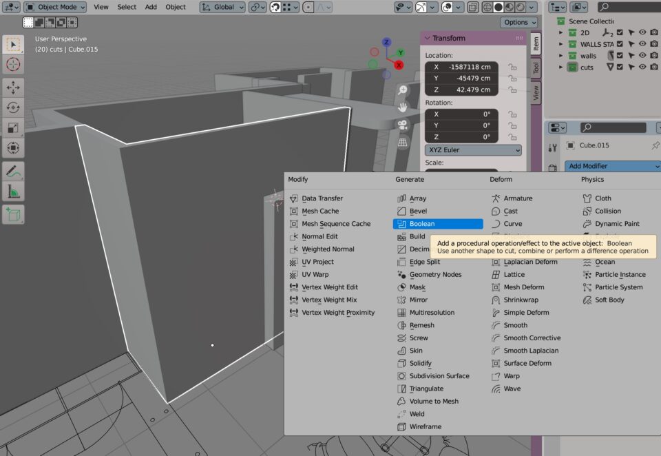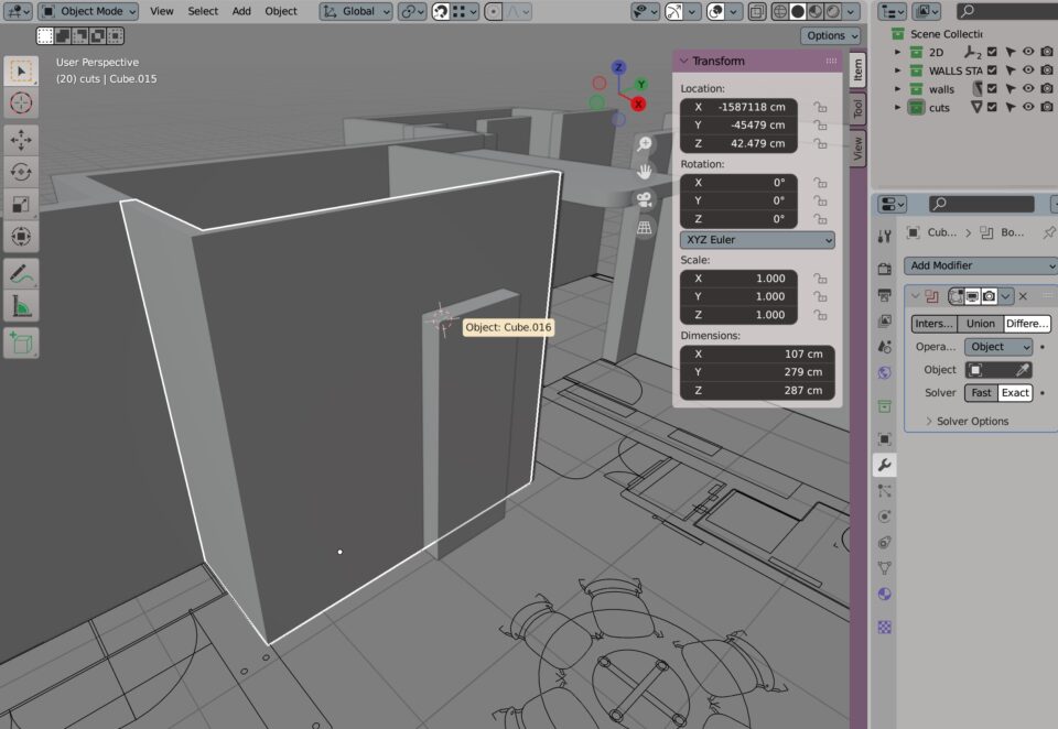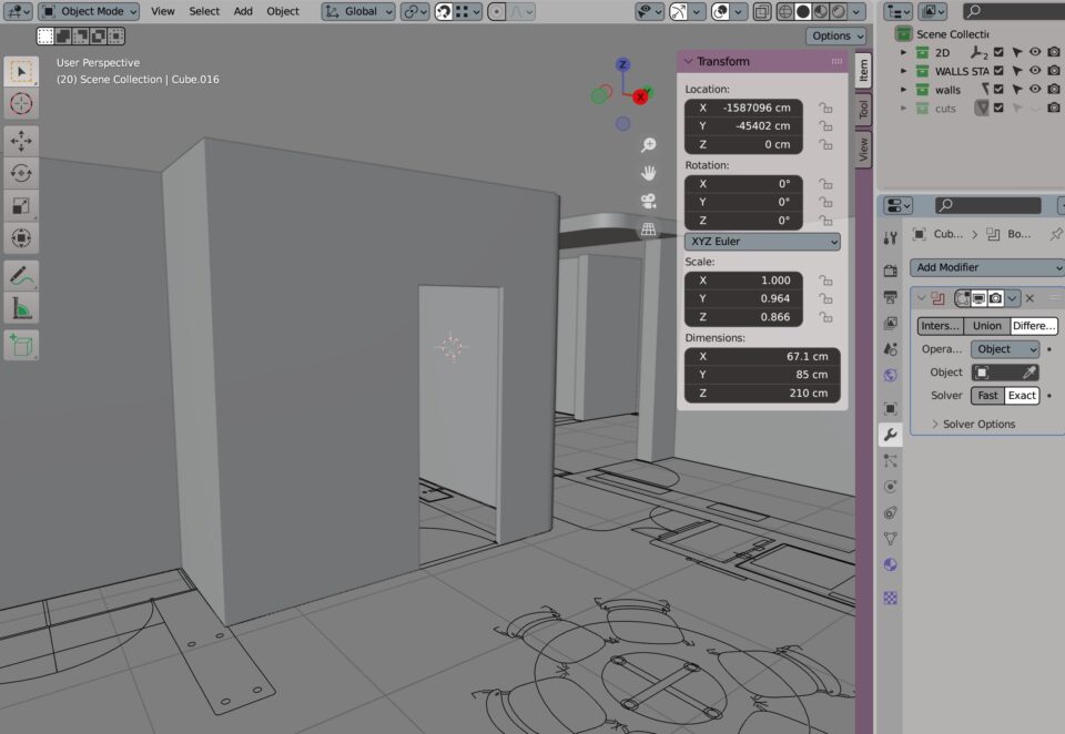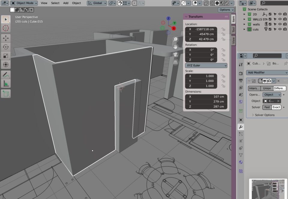 There are several ways to create holes for doors and windows. I will tell you my favourite two.