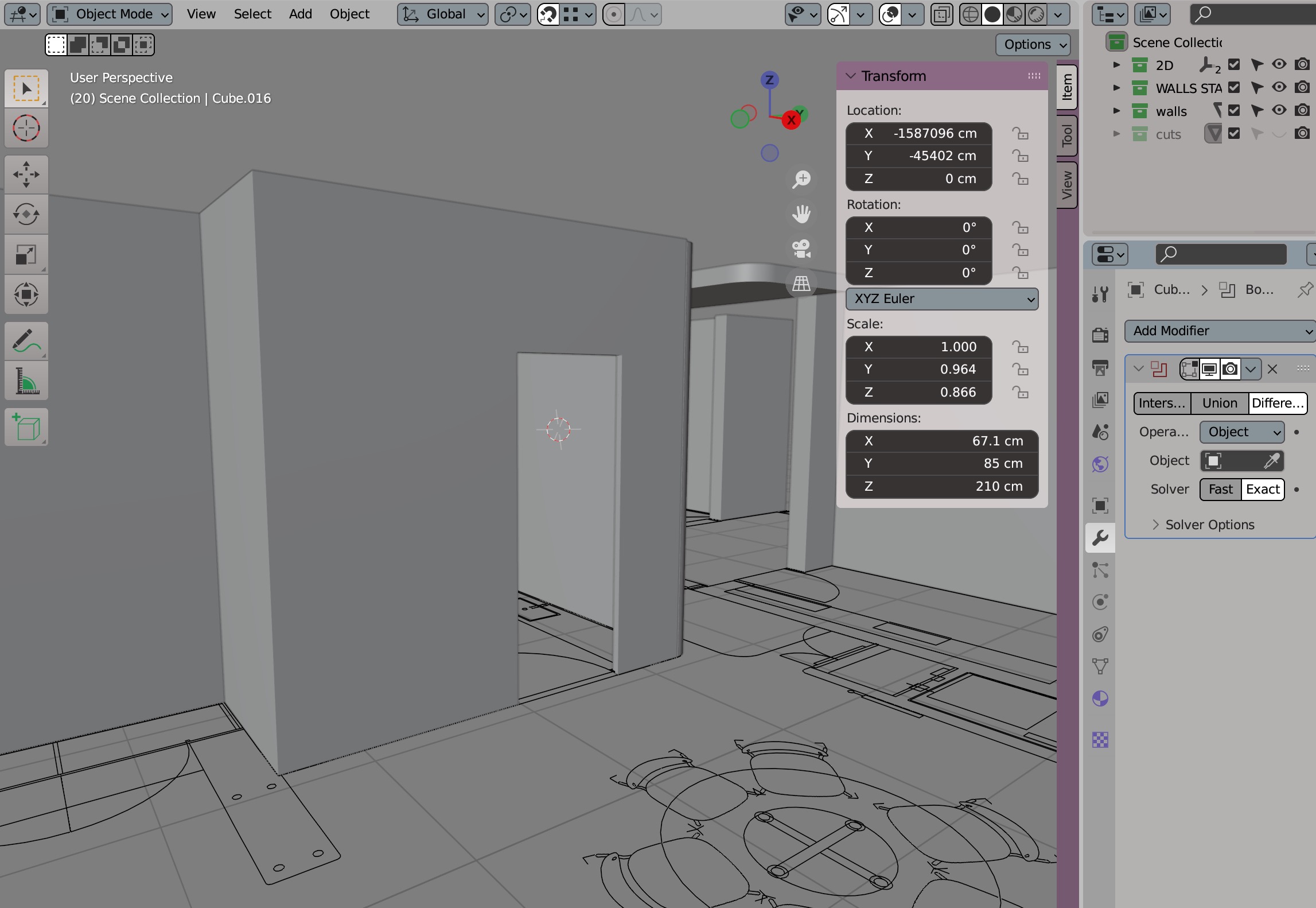 4. Select “difference” and then with the dropper select the volume for the hole of the door