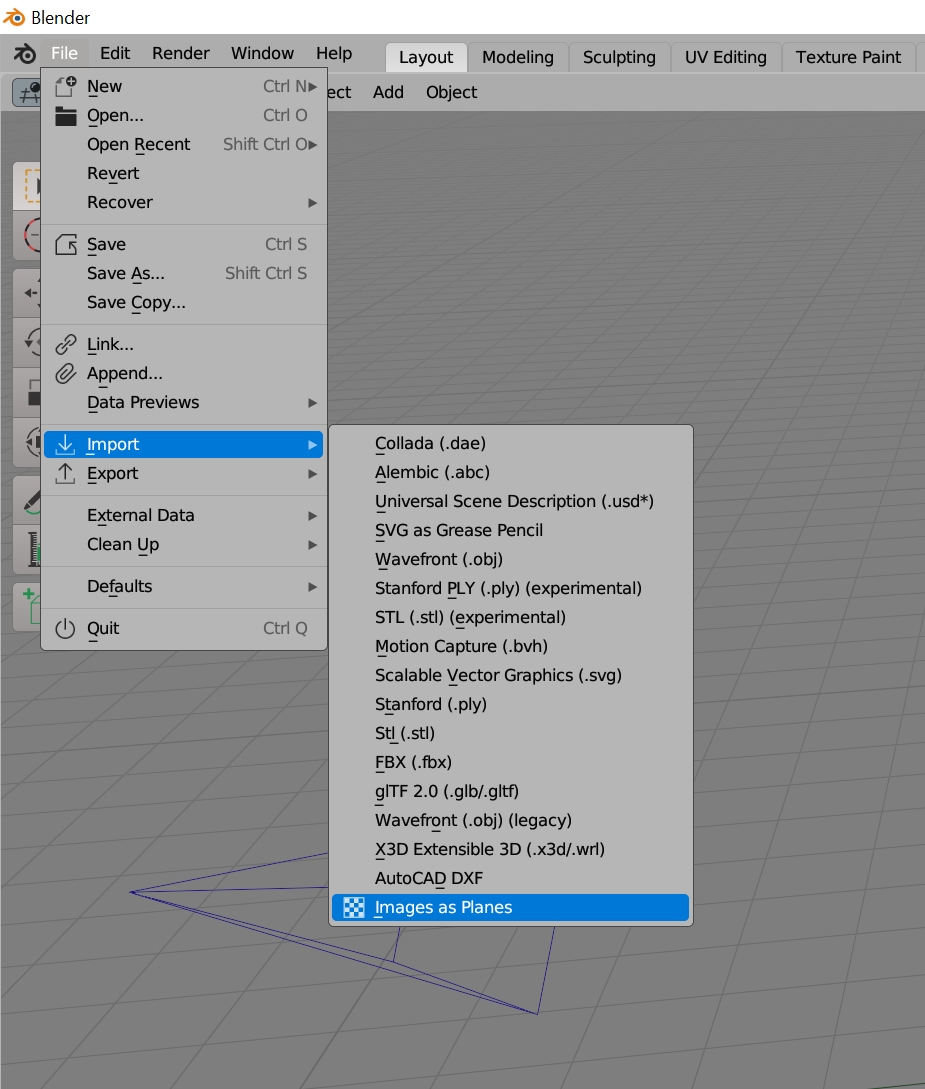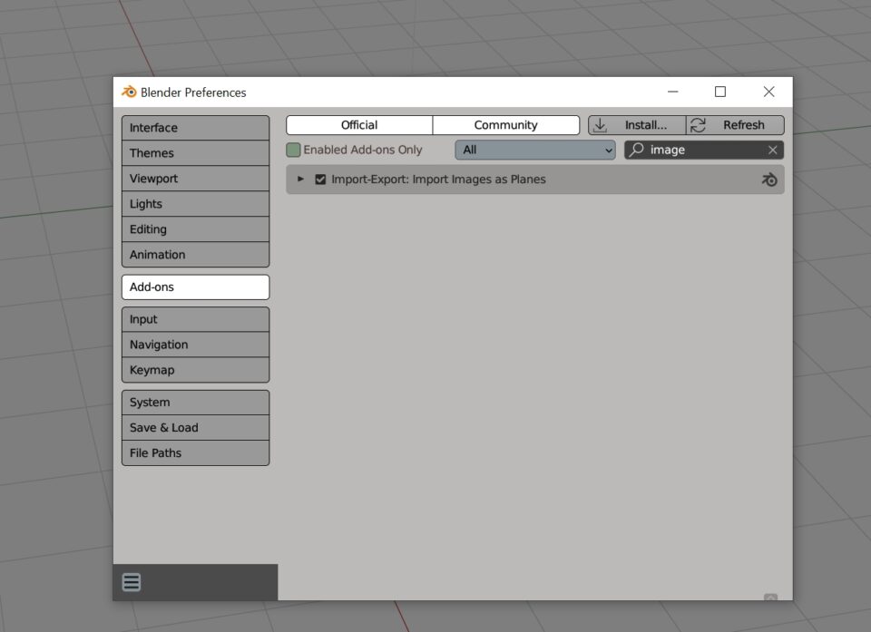 As previously described in our post: where to start, the first step is to make possible the import-export of images with an add-on: