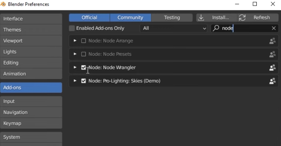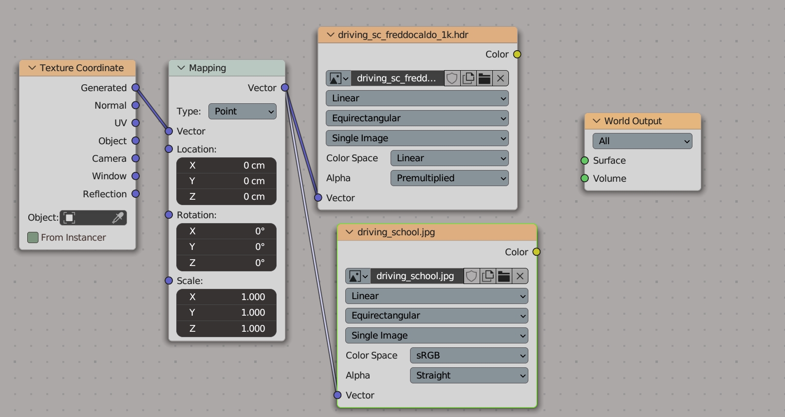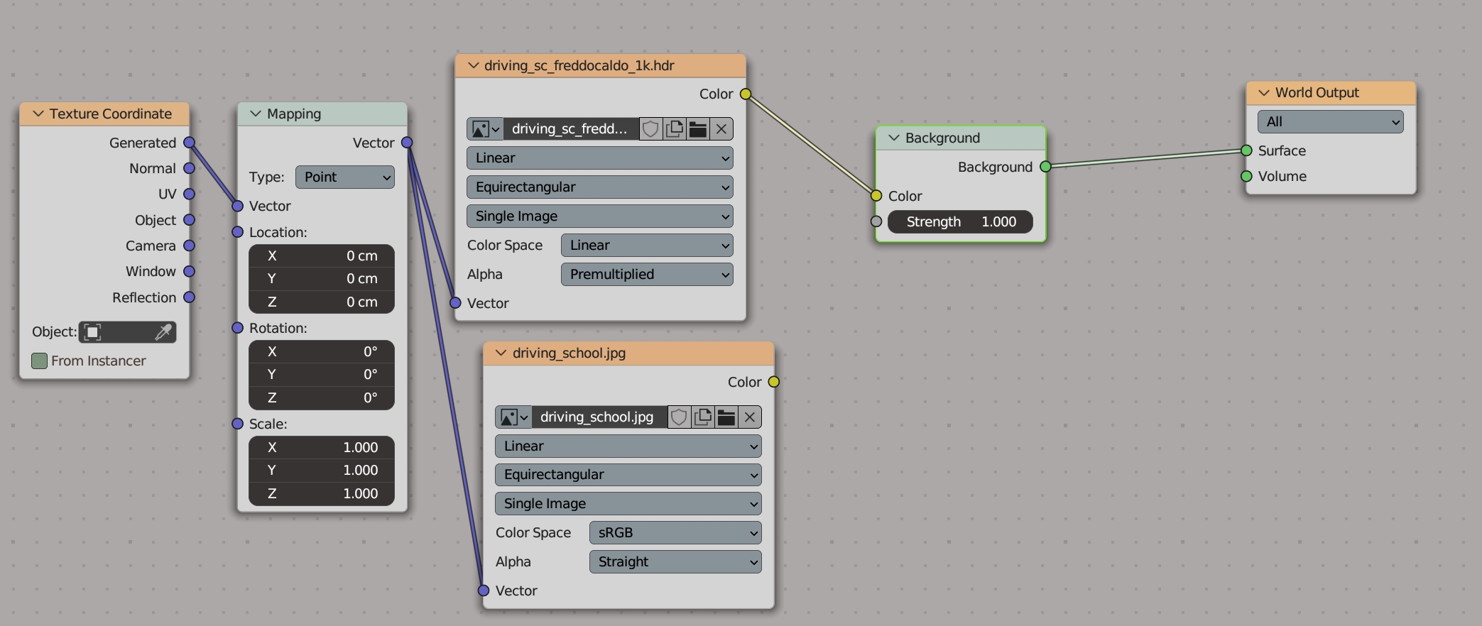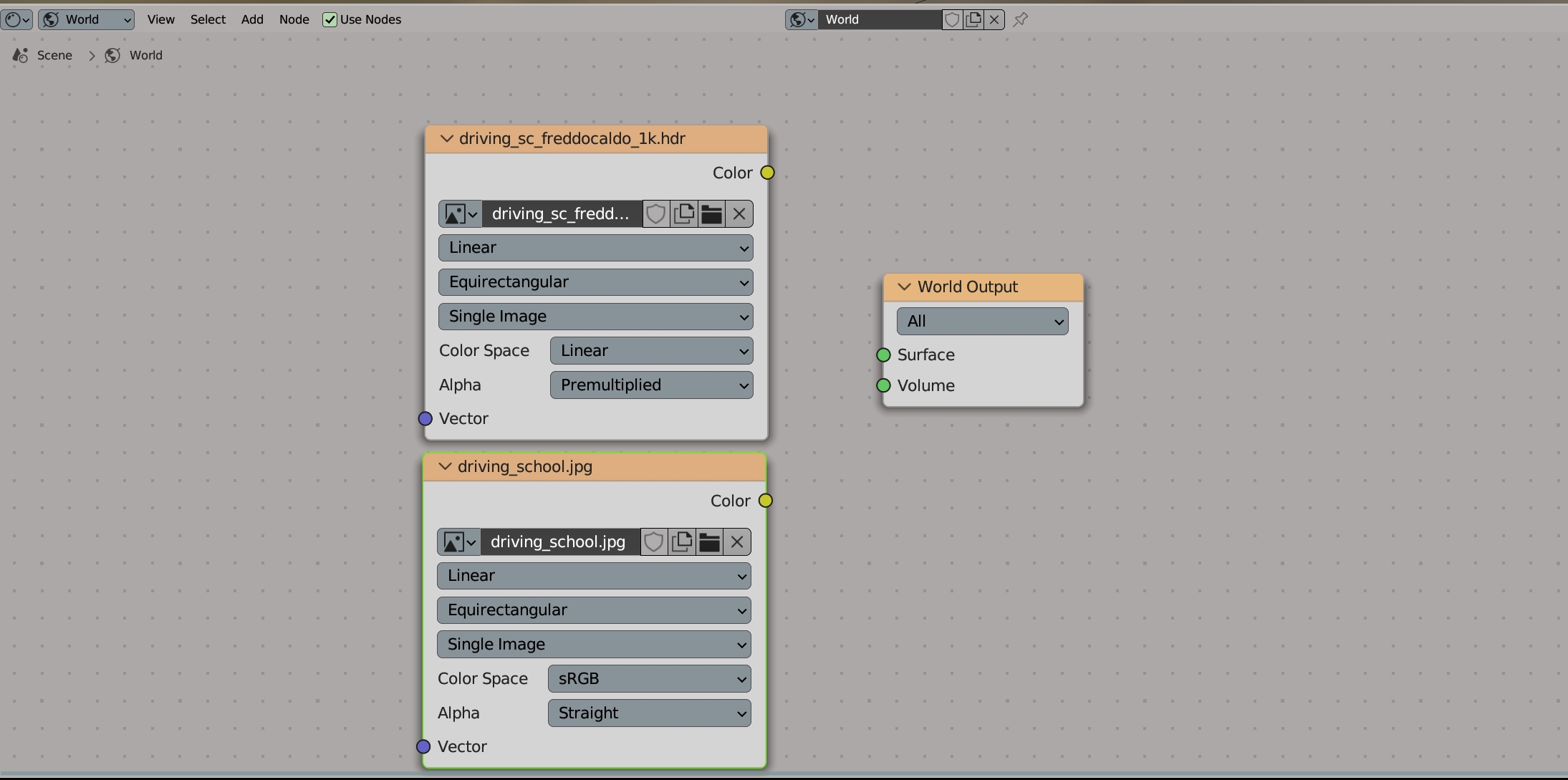 - from the Add menu, add the Environment texture, and from its menu add your hdr file