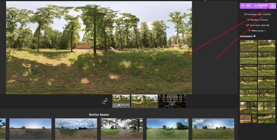 - to save a large amount of space, you can download the small size file. If you don’t need the HDRI also for its image background, you can end here this process