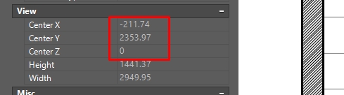 – While you are visualizing your drawing, click on properties. You will have the coordinates of your current view. In the photo below, we are on the left of the origin of the x-axis, and above the origin the y-axis. Luckily all the drawing lays on the x-y plan, because Z value is 0
