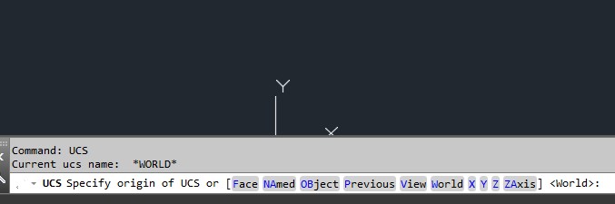 – the first step is to establish the axis in the real origin: WRITE UCS, SELECT WORLD in the command list, and press enter.