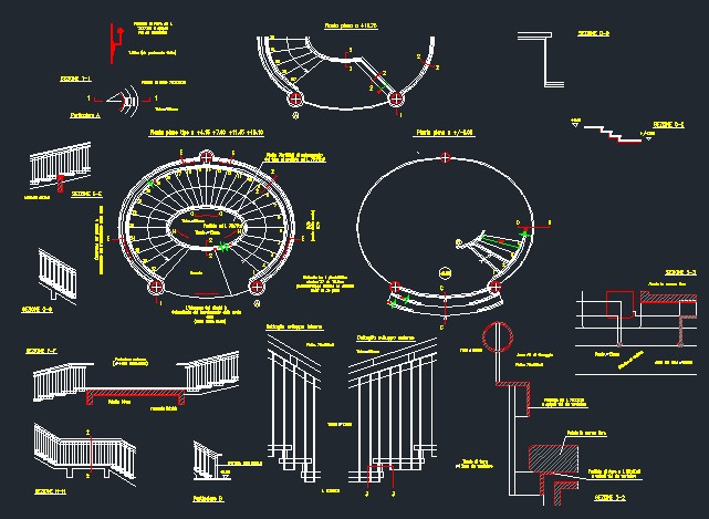 contenuto: sezioni, piante, ringhiere, gradini, materiali, struttura